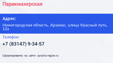 Парикмахерская по адресу Нижегородская область, Арзамас, улица Красный путь, 12а в дальнейшем Организация, размещена в следующих категориях: