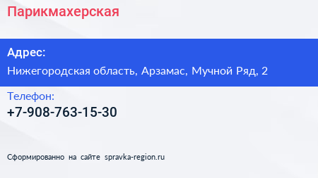Парикмахерская по адресу Нижегородская область, Арзамас, Мучной Ряд, 2 в дальнейшем Организация, размещена в следующих категориях: