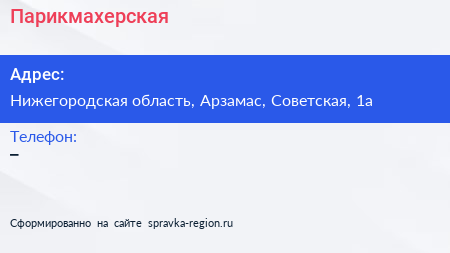 Парикмахерская по адресу Нижегородская область, Арзамас, Советская, 1а в дальнейшем Организация, размещена в следующих категориях:
