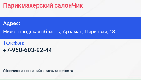 Парикмахерский салонЧик по адресу Нижегородская область, Арзамас, Парковая, 18 в дальнейшем Организация, размещена в следующих категориях: