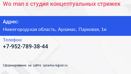 Wo & man`s, студия концептуальных стрижек по адресу Нижегородская область, Арзамас, Парковая, 1и в дальнейшем Организация, размещена в следующих категориях:
