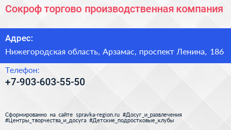 Сокроф, торгово-производственная компания по адресу Нижегородская область, Арзамас, проспект Ленина, 186 в дальнейшем Организация, размещена в следующих категориях: