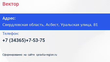 Вектор по адресу Свердловская область, Асбест, Уральская улица, 81 в дальнейшем Организация, размещена в следующих категориях: