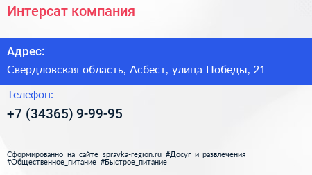 Интерсат, компания по адресу Свердловская область, Асбест, улица Победы, 21 в дальнейшем Организация, размещена в следующих категориях: