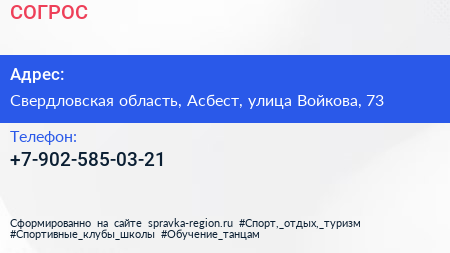 СОГРОС по адресу Свердловская область, Асбест, улица Войкова, 73 в дальнейшем Организация, размещена в следующих категориях: