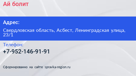 Ай, болит! по адресу Свердловская область, Асбест, Ленинградская улица, 23/1 в дальнейшем Организация, размещена в следующих категориях: