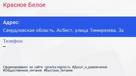 Красное & Белое по адресу Свердловская область, Асбест, улица Тимирязева, 3а в дальнейшем Организация, размещена в следующих категориях: