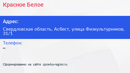 Красное & Белое по адресу Свердловская область, Асбест, улица Физкультурников, 31/1 в дальнейшем Организация, размещена в следующих категориях: