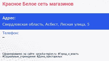Красное & Белое, сеть магазинов по адресу Свердловская область, Асбест, Лесная улица, 5 в дальнейшем Организация, размещена в следующих категориях: