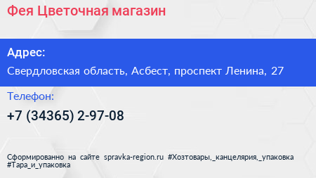 Фея Цветочная, магазин по адресу Свердловская область, Асбест, проспект Ленина, 27 в дальнейшем Организация, размещена в следующих категориях: