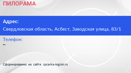ПИЛОРАМА по адресу Свердловская область, Асбест, Заводская улица, 83/1 в дальнейшем Организация, размещена в следующих категориях: