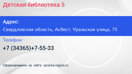 Детская библиотека №5 по адресу Свердловская область, Асбест, Уральская улица, 75 в дальнейшем Организация, размещена в следующих категориях:
