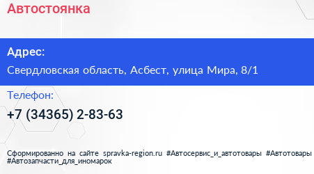 Адрес: Свердловская область, Асбест, Изумрудская, 1