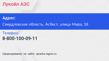 Лукойл, АЗС по адресу Свердловская область, Асбест, улица Мира, 18 в дальнейшем Организация, размещена в следующих категориях: