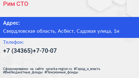Рим, СТО по адресу Свердловская область, Асбест, Садовая улица, 1и в дальнейшем Организация, размещена в следующих категориях: