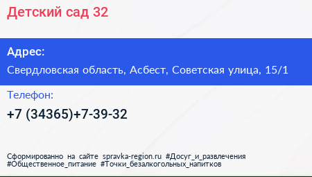 Детский сад №32 по адресу Свердловская область, Асбест, Советская улица, 15/1 в дальнейшем Организация, размещена в следующих категориях: