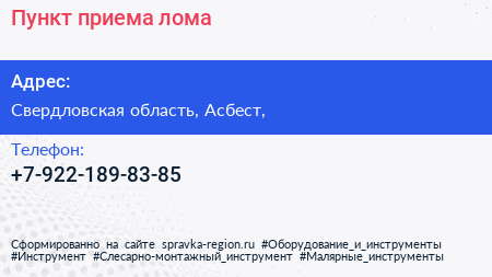Пункт приема лома по адресу Свердловская область, Асбест, в дальнейшем Организация, размещена в следующих категориях: