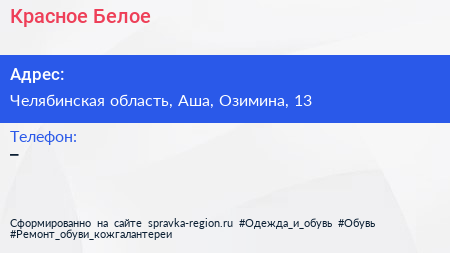 Красное & Белое по адресу Челябинская область, Аша, Озимина, 13 в дальнейшем Организация, размещена в следующих категориях: