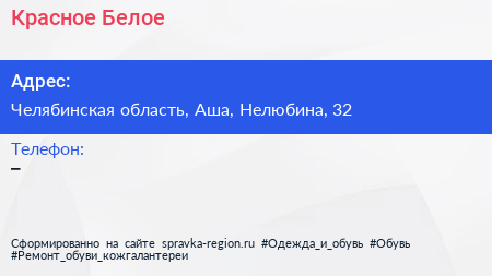 Красное & Белое по адресу Челябинская область, Аша, Нелюбина, 32 в дальнейшем Организация, размещена в следующих категориях: