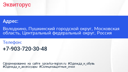 Эквиторус по адресу Володкино, Пушкинский городской округ, Московская область, Центральный федеральный округ, Россия в дальнейшем Организация, размещена в следующих категориях: