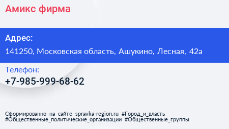 Амикс, фирма по адресу 141250, Московская область, Ашукино, Лесная, 42а в дальнейшем Организация, размещена в следующих категориях: