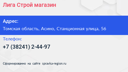 Лига Строй, магазин по адресу Томская область, Асино, Станционная улица, 56 в дальнейшем Организация, размещена в следующих категориях: