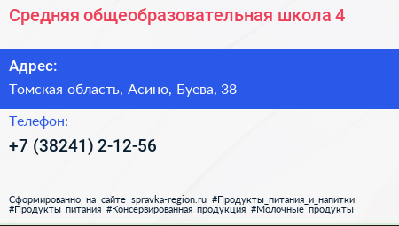 Средняя общеобразовательная школа №4 по адресу Томская область, Асино, Буева, 38 в дальнейшем Организация, размещена в следующих категориях:
