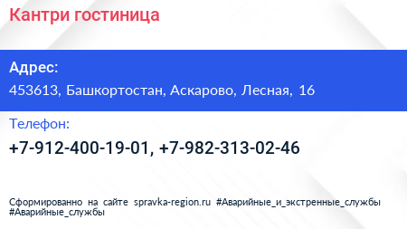Кантри, гостиница по адресу 453613, Башкортостан, Аскарово, Лесная, 16 в дальнейшем Организация, размещена в следующих категориях: