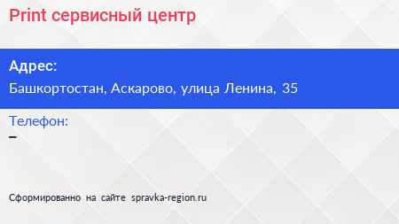 Print, сервисный центр по адресу Башкортостан, Аскарово, улица Ленина, 35 в дальнейшем Организация, размещена в следующих категориях: