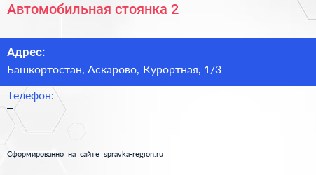 Автомобильная стоянка №2 по адресу Башкортостан, Аскарово, Курортная, 1/3 в дальнейшем Организация, размещена в следующих категориях:
