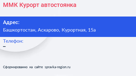 ММК-Курорт, автостоянка по адресу Башкортостан, Аскарово, Курортная, 15а в дальнейшем Организация, размещена в следующих категориях: