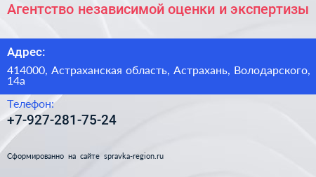 Агентство независимой оценки и экспертизы по адресу 414000, Астраханская область, Астрахань, Володарского, 14а в дальнейшем Организация, размещена в следующих категориях: