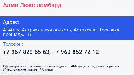 Алма-Люкс, ломбард по адресу 414016, Астраханская область, Астрахань, Торговая площадь, 1Б в дальнейшем Организация, размещена в следующих категориях: