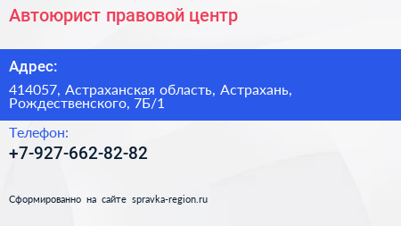 Автоюрист, правовой центр по адресу 414057, Астраханская область, Астрахань, Рождественского, 7Б/1 в дальнейшем Организация, размещена в следующих категориях: