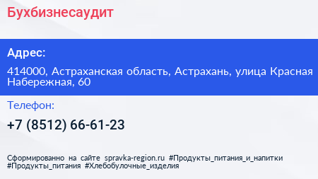 Бухбизнесаудит по адресу 414000, Астраханская область, Астрахань, улица Красная Набережная, 60 в дальнейшем Организация, размещена в следующих категориях: