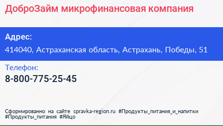ДоброЗайм, микрофинансовая компания по адресу 414040, Астраханская область, Астрахань, Победы, 51 в дальнейшем Организация, размещена в следующих категориях: