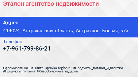 Эталон, агентство недвижимости по адресу 414024, Астраханская область, Астрахань, Боевая, 57а в дальнейшем Организация, размещена в следующих категориях: