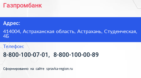 Газпромбанк по адресу 414004, Астраханская область, Астрахань, Студенческая, 4Б в дальнейшем Организация, размещена в следующих категориях: