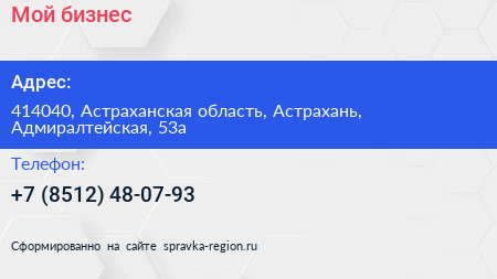 Мой бизнес по адресу 414040, Астраханская область, Астрахань, Адмиралтейская, 53а в дальнейшем Организация, размещена в следующих категориях: