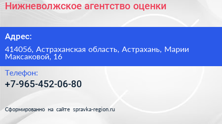 Нижневолжское агентство оценки по адресу 414056, Астраханская область, Астрахань, Марии Максаковой, 16 в дальнейшем Организация, размещена в следующих категориях: