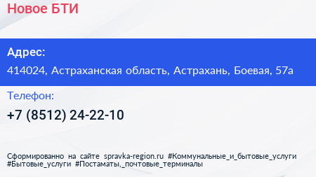 Новое БТИ по адресу 414024, Астраханская область, Астрахань, Боевая, 57а в дальнейшем Организация, размещена в следующих категориях: