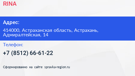 RINA по адресу 414000, Астраханская область, Астрахань, Адмиралтейская, 14 в дальнейшем Организация, размещена в следующих категориях: