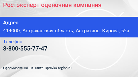 Ростэксперт, оценочная компания по адресу 414000, Астраханская область, Астрахань, Кирова, 55а в дальнейшем Организация, размещена в следующих категориях: