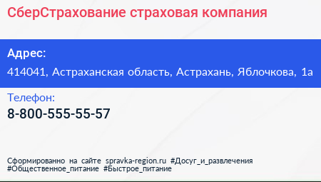 СберСтрахование, страховая компания по адресу 414041, Астраханская область, Астрахань, Яблочкова, 1а в дальнейшем Организация, размещена в следующих категориях: