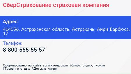 СберСтрахование, страховая компания по адресу 414056, Астраханская область, Астрахань, Анри Барбюса, 17 в дальнейшем Организация, размещена в следующих категориях:
