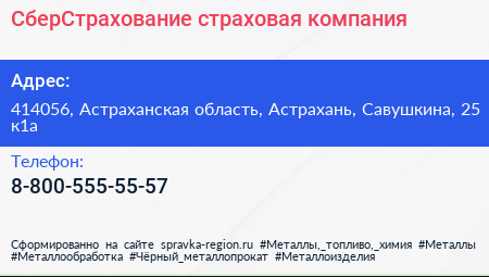 СберСтрахование, страховая компания по адресу 414056, Астраханская область, Астрахань, Савушкина, 25 к1а в дальнейшем Организация, размещена в следующих категориях: