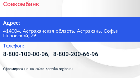Совкомбанк по адресу 414004, Астраханская область, Астрахань, Софьи Перовской, 79 в дальнейшем Организация, размещена в следующих категориях: