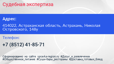 Судебная экспертиза по адресу 414022, Астраханская область, Астрахань, Николая Островского, 148у в дальнейшем Организация, размещена в следующих категориях: