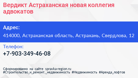 Вердикт, Астраханская новая коллегия адвокатов по адресу 414000, Астраханская область, Астрахань, Свердлова, 12 в дальнейшем Организация, размещена в следующих категориях: