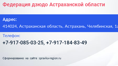 Федерация дзюдо Астраханской области по адресу 414024, Астраханская область, Астрахань, Челябинская, 1а в дальнейшем Организация, размещена в следующих категориях: